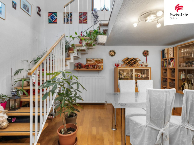 Ein besonderes Highlight ist die lichtdurchflutete Galerie, die vom Esszimmer aus über eine Treppe erreicht wird. Die Galerie wird derzeit als Wohnzimmer genutzt und ermöglicht einen tollen Ausblick auf den belebten Meidlinger Markt und auf das bunte Stadttreiben.