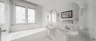 Zwei der hofseitigen Schlafzimmer teilen sich einen großzügigen Ankleideraum sowie den direkten Zugang zum modernen Badezimmer mit Fenster. Dieses überzeugt mit hochwertiger Ausstattung: