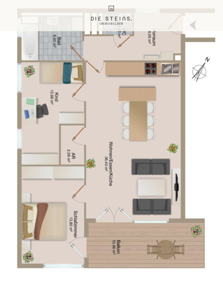 Mit einer großzügigen Wohnfläche von 81,03 m², einer Raumhöhe von 2,70m und einer durchdachten Raumaufteilung erstreckt sich diese Wohnung über drei helle und einladende Zimmer. Die gesamte Wohnung ist mit Eichenparkett inkl. Fußbodenheizung ausgestattet. In der hochwertigen Küche befinden sich ausschließlich ausgesuchte Markengeräte und die Fenster sind mit Sonnenschutzverglasung sowie Schallschutzfunktion ausgerüstet. Diese sorgen dafür, dass vom Verkehr in der Wohnung nichts zu hören ist. Die lichtdurchfluteten Räume schaffen eine angenehme Atmosphäre, in der Sie sich sofort wohlfühlen werden. Ob als gemütliches Zuhause für eine Familie oder als stilvolle Wohnung für Paare – hier finden Sie den idealen Raum für Ihre individuellen Bedürfnisse.