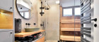 - Badezimmer mit verglaster Dusche so wie Sauna