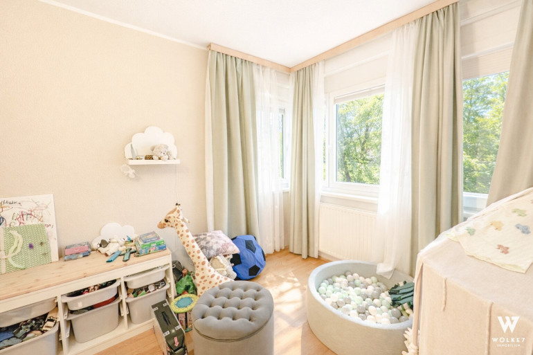 Zwei großzügige Schlafzimmer mit jeweils ca. 18–19 m² bieten vielseitige Nutzungsmöglichkeiten – ob als Schlaf-, Kinder- oder Arbeitszimmer. Das moderne Badezimmer mit Dusche und Badewanne, ein separates WC sowie ein Abstellraum mit Waschmaschinenanschluss sorgen für zusätzlichen Komfort im Alltag.