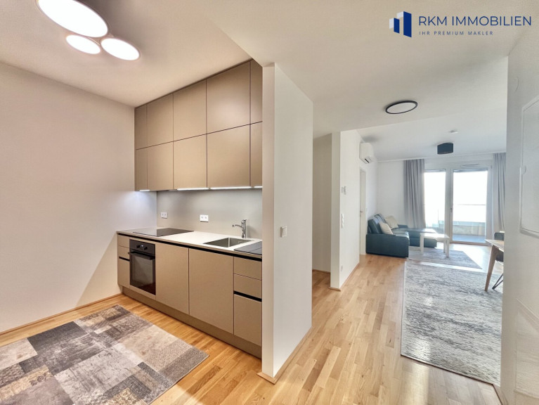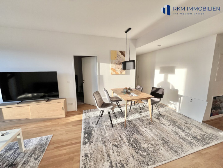 Die neuwertige Wohnung besticht durch einen harmonischen Grundriss und hochwertige Materialien. Der edle Parkettboden sorgt für ein warmes Wohnambiente, während die Fußbodenheizung und die zentrale Fernwärme für ein angenehmes Klima zu jeder Jahreszeit sorgen. Die moderne Einbauküche ist nicht nur funktional, sondern auch ein echter Blickfang und lässt das Herz eines jeden Hobbykochs höher schlagen.