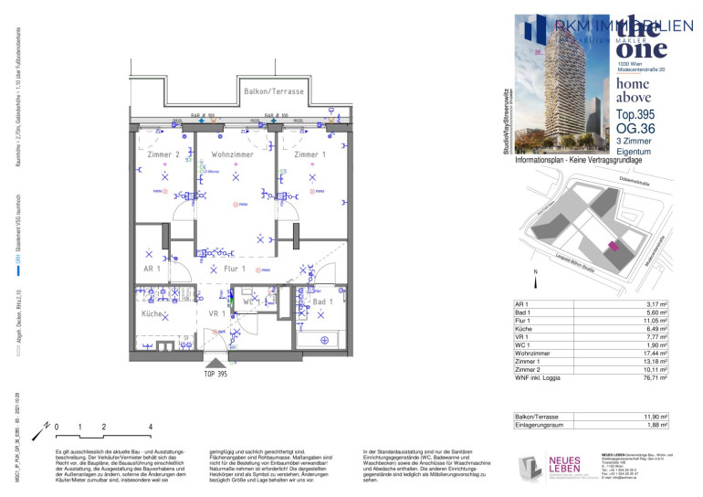 In der 36. Etage eines modernen Wohnhauses im begehrten 3. Bezirk erwartet Sie eine exklusive Wohnung, die nicht nur durch ihre Lage, sondern auch durch ihre Ausstattung überzeugt. Auf großzügigen 76,71 m² erstrecken sich drei lichtdurchflutete Zimmer, die Ihnen viel Raum für individuelle Gestaltungsmöglichkeiten bieten.