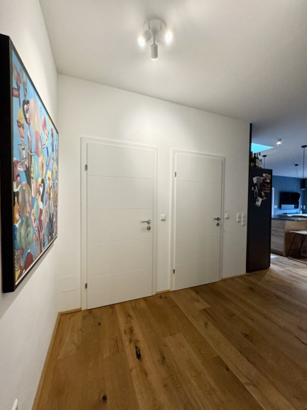 Über einen geräumigen Vorraum bietet die 122 m² große Wohnung mit Südwestausrichtung einen modernen Grundriss und hochwertige Materialen. Über die zentral gelegene 55 m² große Wohnküche hat man direkten Zugang zu den weiteren 3 Zimmern, von denen eines direkten Zugang zu einem Bad mit Toilette, Badewanne und Doppelwaschbecken bietet.