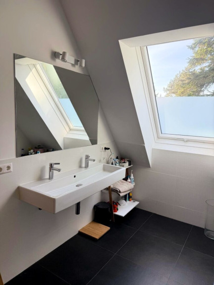 - 1 Badezimmer mit Badewanne, Doppelwaschbecken WC und Fenster 1 Badezimmer mit Dusche