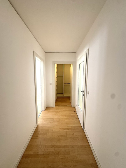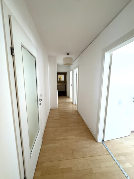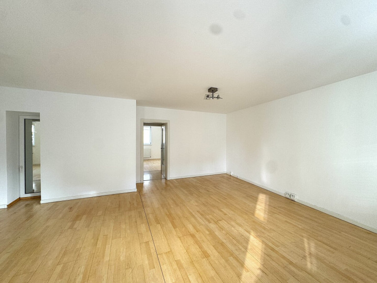 The apartment offers approximately 108 square metres of living space with a well-thought-out layout. From the entrance hall, you enter a spacious living and dining area with an open connection to the kitchen. The balcony, facing the quiet courtyard, is accessible from this area. A central hallway leads to three additional rooms suitable as bedrooms, guest rooms or a home office, as well as a walk-in wardrobe and the main bathroom.