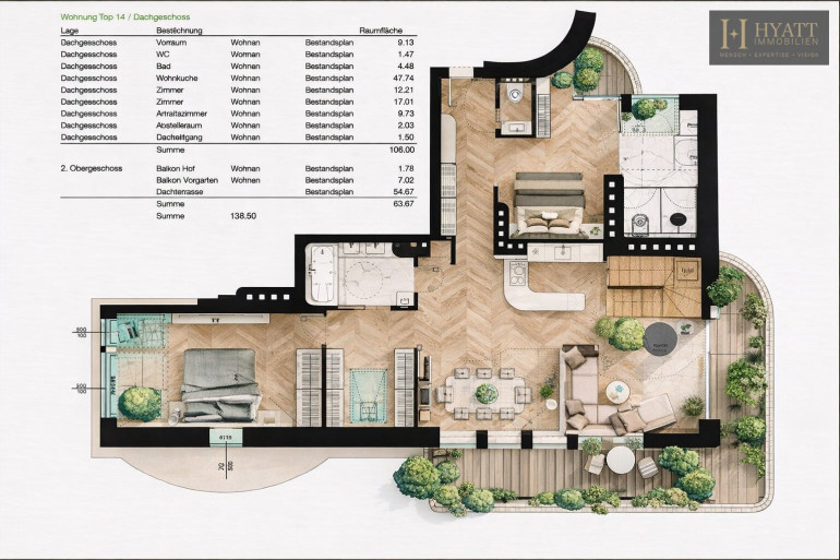 Dieses außergewöhnliche Dachgeschoss-Penthouse befindet sich in einem der gefragtesten Wohn- und Villenviertel im Westen Wiens. Die Lage besticht durch ihre Ruhe, ihre grüne Umgebung und ein stilvolles, gewachsenes Stadtbild mit klassischer Wiener Architektur. Die Parkanlagen von Schönbrunn liegen nur wenige Gehminuten entfernt und bieten einen einzigartigen Mehrwert im Alltag – sei es für morgendliche Spaziergänge, sportliche Aktivitäten oder entspannte Stunden im Grünen. Eine Wohnlage, die Lebensqualität spürbar erhöht. Gleichzeitig überzeugt die Umgebung durch eine hervorragende Infrastruktur: Einkaufsmöglichkeiten, Cafés, Restaurants, Schulen sowie öffentliche Verkehrsmittel sind rasch erreichbar. Diese Kombination aus Privatsphäre, Prestige und urbaner Nähe macht die Lage besonders wertstabil und nachhaltig begehrt.