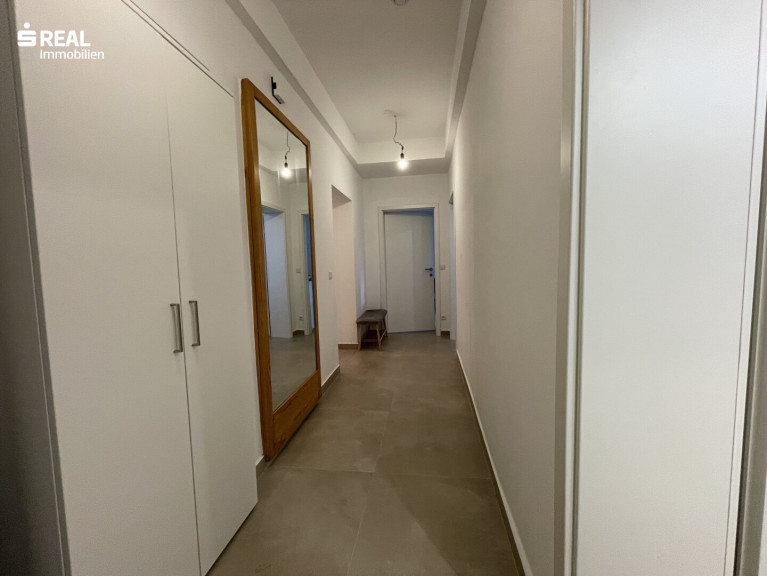 Über den großzügig gestalteten Vorraum sind sämtliche Räumlichkeiten zentral begehbar. Die Wohnung umfasst ein elegantes Badezimmer mit WC, ausgestattet mit einer großzügigen Dusche, zwei Schlafzimmer, ein lichtdurchflutetes Wohnzimmer sowie eine geräumige Küche mit Essbereich.