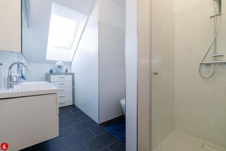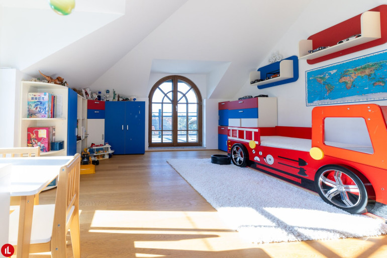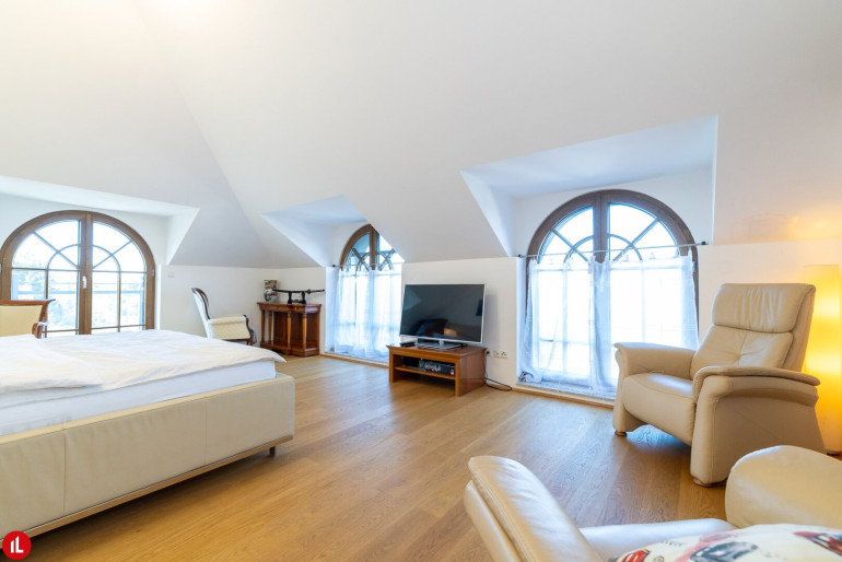 Im gesamten Haus sorgen Fußbodenheizung, Holz-Alu-Fenster und hochwertige Materialien wie Nussholzböden und Steinbeläge für nachhaltigen Wohnkomfort. Die privaten Rückzugsbereiche im Obergeschoss sind ruhig, hell und mit Terrassenflächen ausgestattet.