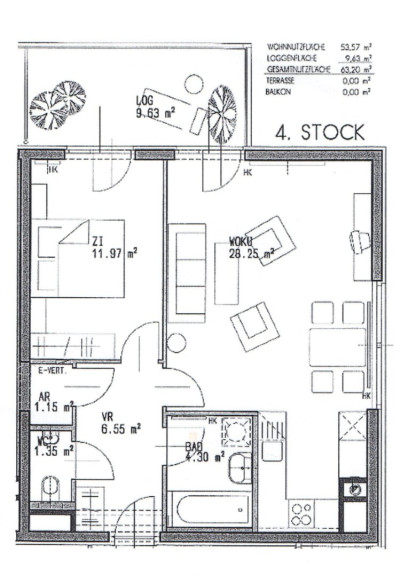 Zur Vermietung gelangt eine 53,57 m² große 2-Zimmer-Wohnung im barrierefreien 4. Liftstock mit einer 9,63 m² großen Loggia.