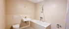 - einem Badezimmer mit Badewanne und WC