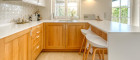На нижнем уровне расположена просторная, современная дизайнерская кухня с отдельным входом с террасы. Рядом находится удобное подсобное помещение, также с выходом на террасу.