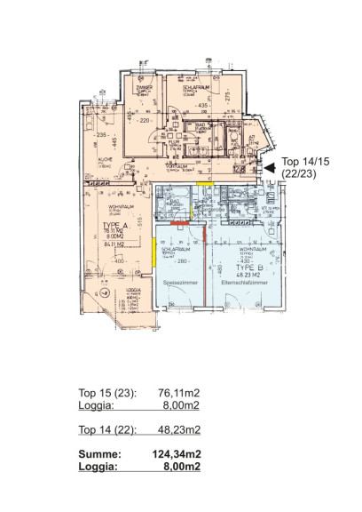 Diese freundliche Eigentumswohnung im 3. Stock überzeugt mit einer Wohnfläche von ca. 76,11 m² und einer zusätzlichen, sonnigen Loggia von 8,00 m². Die Gesamtnutzfläche beträgt großzügige 84,11 m².