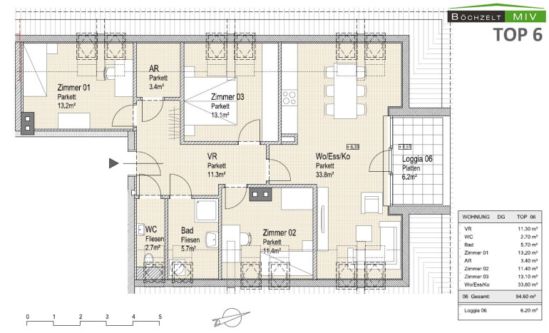 Zur Vermietung gelangt eine neu sanierte Mietwohnung mit ca. 94,60 m². Die Wohnung ist ab 01.04.2026 beziehbar und verfügt auch über eine ca. 6,2 m² große Loggia.