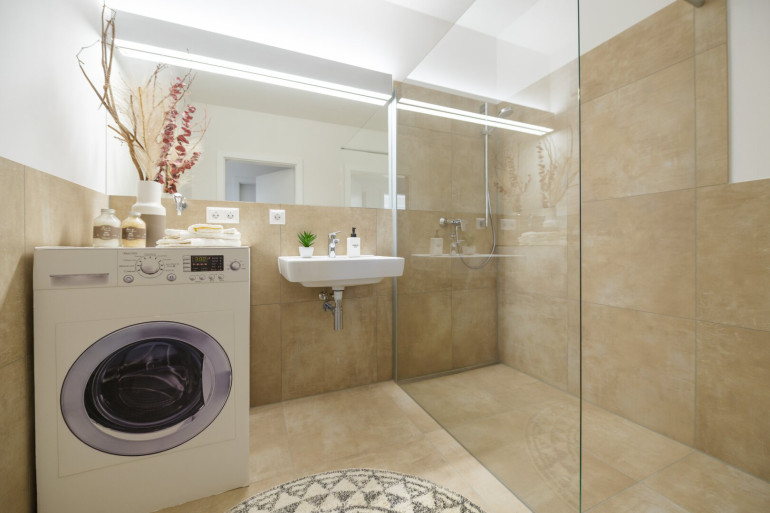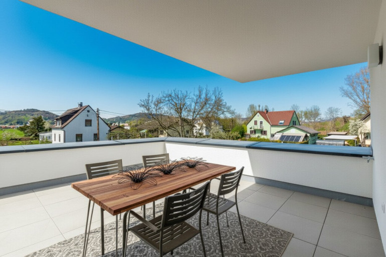 Mit einer Wohnfläche von rund 82m² aufgeteilt auf 3 Zimmer, Wohn- Essbereich mit moderner Küche sowie Zugang zu einer großzügigen Südwestterrasse und einem zusätzlichen Balkon, erfüllt diese Immobilie höchste Ansprüche an komfortables Wohnen. Hochwertige Ausstattungselemente wie Fußbodenheizung, edle Fließen und stilvolle Materialien schaffen ein ansprechendes Wohnambiente, das auch anspruchsvolle Mieter begeistert. Ein Carport-Stellplatz runden das Angebot ab.