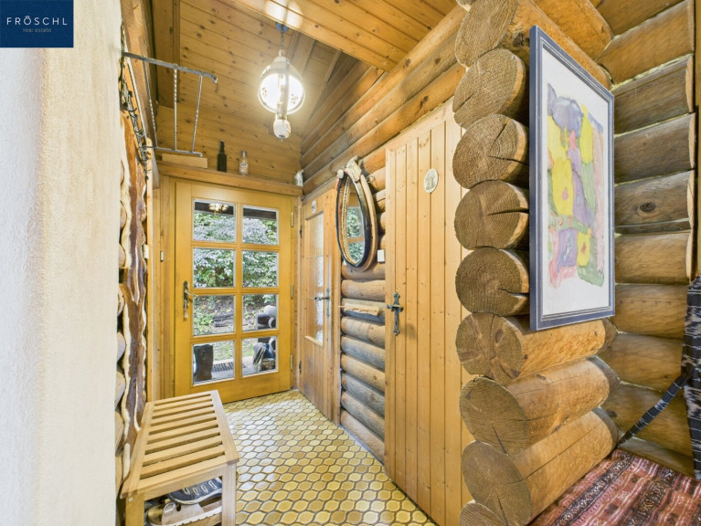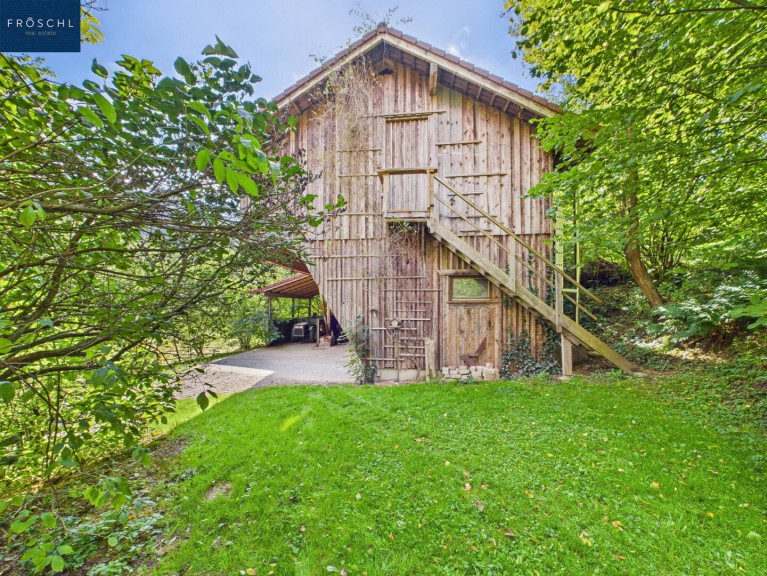 Am Rand des Nationalparks Thayatal, dort wo die Landschaft leise wird und die Thaya in ruhigen Schleifen vorbeizieht, liegt dieses besondere Ensemble. Ein erhaltenswertes Holzbohlenhaus mit drei Ebenen, flankiert von Garage, großzügigem Pferdestall und stimmigen Nebengebäuden – eingebettet in ein rund 3.510 m² großes Naturgrundstück mit direktem Wasserzugang. Zusätzlich erweitert ein Pachtgrundstück von ca. 1 Hektar direkt am Fluss den privaten Freiraum – mit eigenem Kanuanleger und Badeplatz für die stillen Momente am Wasser. Errichtet 1976, umfassend adaptiert 2001–2009.