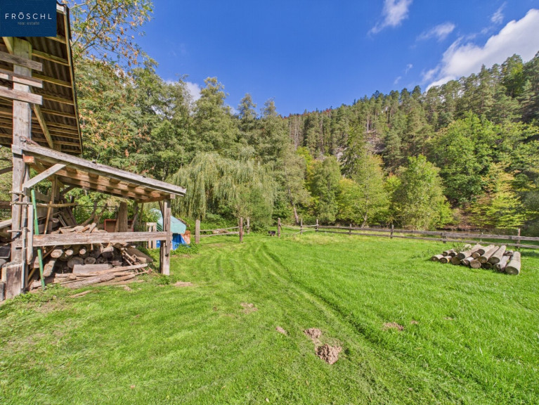 Eingebettet in die sanfte Hügellandschaft des nördlichen Waldviertels, am Rand des Nationalparks Thayatal, liegt das Anwesen Sauggern 20 – ein Ort, an dem Ursprünglichkeit, Ruhe und Naturerlebnis auf einzigartige Weise verschmelzen. Die Liegenschaft befindet sich in der idyllischen Ortschaft Sauggern, einem kleinen, traditionsreichen Dorf mit nur wenigen Häusern, das von Wäldern, Wiesen und der wildromantischen Thaya umgeben ist. Hier, wo die Zeit langsamer zu vergehen scheint, genießt man einen unverstellten Blick auf die unberührte Natur und profitiert von einer außergewöhnlichen Lebensqualität. Das Grundstück selbst grenzt direkt an die Thaya und bietet einen privaten Zugang zum Fluss mit eigenem Kanuanleger und Badeplatz – ein seltenes Privileg in dieser Region. Die Umgebung ist geprägt von einer beeindruckenden Artenvielfalt, klarer Luft und einer Stille, die nur vom Zwitschern der Vögel und dem sanften Rauschen des Wassers unterbrochen wird. Spaziergänge entlang des Kollmitzgrabens, einer der schönsten Abschnitte der Thaya, führen vorbei an alten Burgruinen, Biotopen und naturbelassenen Uferlandschaften. Entfernungen zu den wichtigsten Städten: • Waidhofen an der Thaya: 23 km (ca. 29 Min.) • Horn: 32 km (ca. 32 Min.) • Zwettl: 48 km (ca. 49 Min.) • Gmünd: 54 km (ca. 55 Min.) • Krems an der Donau: 82 km (ca. 1 Std. 15 Min.) • St. Pölten: 110 km (ca. 1 Std. 30 Min.) • Linz: 120 km (ca. 1 Std. 45 Min.) • Wien (Zentrum): 135 km (ca. 1 Std. 50 Min.) • Prag: 170 km (ca. 2 Std. 30 Min.) Die Infrastruktur ist trotz der abgeschiedenen Lage hervorragend: Das Städtchen Raabs an der Thaya mit Wellnessbad, Ärzten, Apotheken, Einkaufsmöglichkeiten und Schulen ist in nur zehn Minuten erreichbar. Die Bezirkshauptstadt Horn mit Krankenhaus, Ärztezentren, Einkaufszentrum und Bahnanbindung nach Krems und St. Pölten liegt etwa 25 Minuten entfernt. Für Pendler bietet der nahegelegene Bahnhof Irnfritz eine direkte Verbindung nach Wien. Die Besonderheiten dieser Immobilie im Naturpark sind vielfältig: Neben dem großzügigen Grundstück mit eigenem Flusszugang und Pachtgrundstück am Wasser bietet dieses Anwesen mehr als ein Zuhause – es ist ein Rückzugsort für Menschen, die das Besondere suchen: Naturverbundenheit, Privatsphäre und die Freiheit, das Leben in seiner ursprünglichsten Form zu genießen.