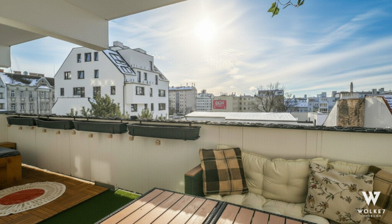 3 Zimmer inkl. Wohnküche + Badezimmer inkl. Dusche und Badewanne + separate Toilette + Abstellraum mit Waschmaschinenanschluss + Vorzimmer + Loggia & großer Balkon