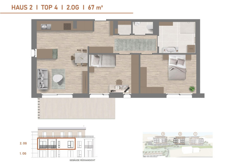 Die Top 4, im mittleren von insgesamt drei Häusern bietet eine Fläche von 67m².