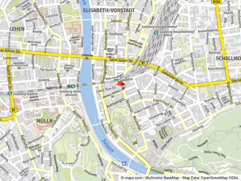 Das Objekt liegt nur wenige Meter vom Max-Ott-Platz entfernt in Gehweite zum Bahnhof und zum Mirabellplatz. Gastronomische Einrichtungen und Nahversorger befinden sich in fußläufiger Entfernung, genauso wie die Salzach. Die Buslinien 1, 2, 3, 5, 6, 14 und 25 mit der Haltestell "Kongresshaus" bieten beste Erreichbarkeit, dazu ist die Autobahnauffahrt Salzburg Nord nur wenige Fahrminuten entfernt.