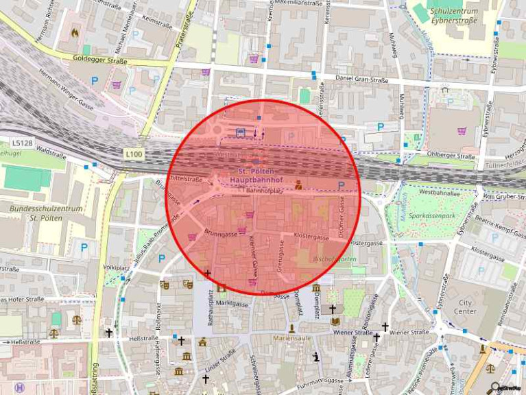 Das Geschäfts- und Bürogebäude befindet sich direkt im Zentrum von St. Pölten. Besonders erwähnenswert ist die ausgezeichnete Verkehrsanbindung. Sowohl in öffentlicher als auch privater Hinsicht ist das Büro sehr gut gelegen. Diese gute Lage spiegelt sich auch in den Bereich Infrastruktur und Einkaufsmöglichkeiten wider. Keine Minute Gehzeit entfernt befindet sich der St. Pöltner Hauptbahnhof und auch diverse Einkaufsmöglichkeiten befindet sich nur wenige Meter entfernt.