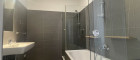 Das kleinere Schlafzimmer verfügt über ein eigenes Duschbad en suite und schafft damit einen privaten Rückzugsbereich. Das große Badezimmer ist über einen dezent angelegten Zwischenraum sowohl mit dem Wohnbereich als auch mit dem großen Schlafzimmer verbunden und bietet mit Dusche und Badewanne ein hohes Maß an Komfort und Flexibilität.