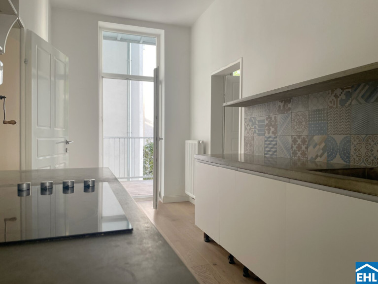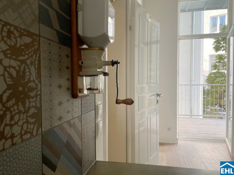 Ein seltener Vorzug, der große Balkon in den Innenhof bietet Raum für entspannte Stunden. Eine Besonderheit, die man in klassischen Altbauwohnungen nur selten vorfindet.