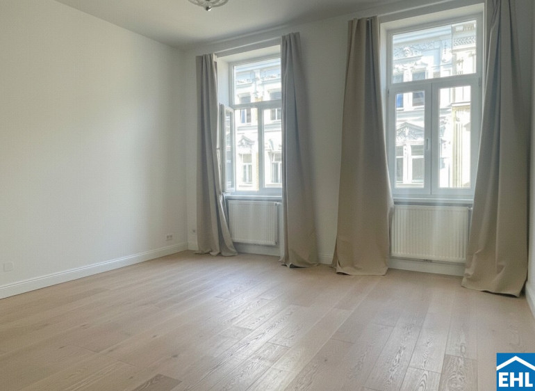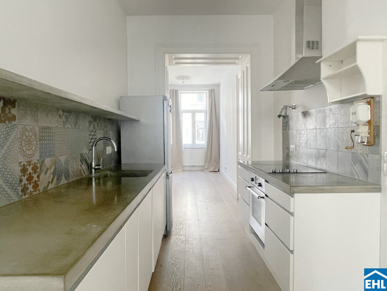 Im Mittelpunkt der Wohnung steht eine individuell gestaltete Küche, die nicht nur funktionaler Raum, sondern zugleich kommunikatives Zentrum ist. Von hier aus öffnen sich die Wege zum Balkon, zum großzügigen Wohnzimmer, zu einem der Schlafzimmer sowie zum Vorraum. Ein fließender Grundriss, der Offenheit und Struktur in harmonischem Gleichgewicht hält.