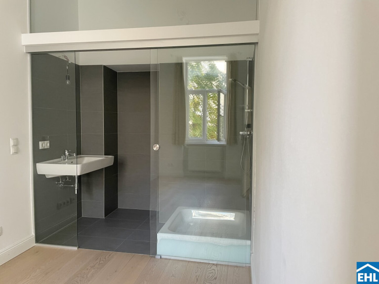 Die durchdachte Raumaufteilung schenkt Alltagsspielraum, Ruhe und Bewegungsfreiheit zugleich. Ein Personenaufzug sorgt für einen angenehmen Zugang zur Wohnung, ein zugeordnetes Kellerabteil ergänzt das Raumangebot. Für den urbanen Alltag besonders praktisch: Ein Fahrradraum, der direkt von der Straße aus befahrbar ist.