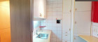 Die Küche ist mit einer einfachen Einbauküche ausgestattet.