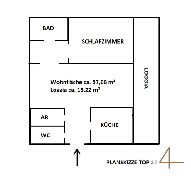 Wohnfläche: ca.57,06m² + Loggia + Kellerabteil
