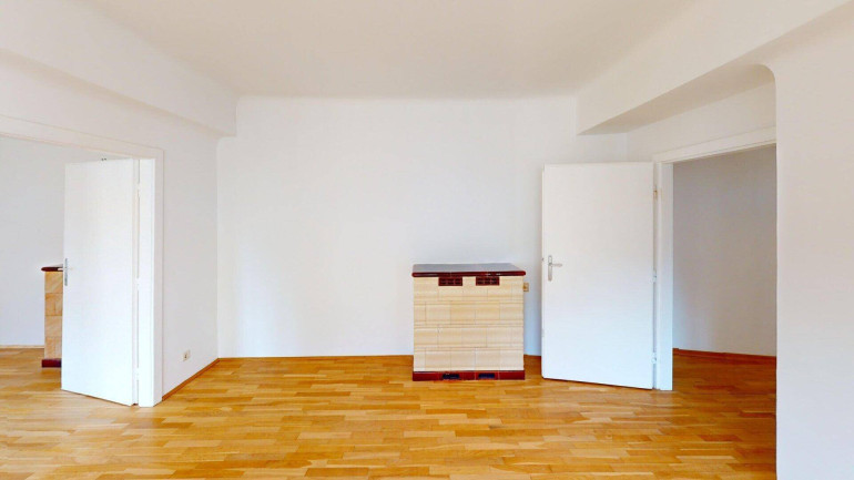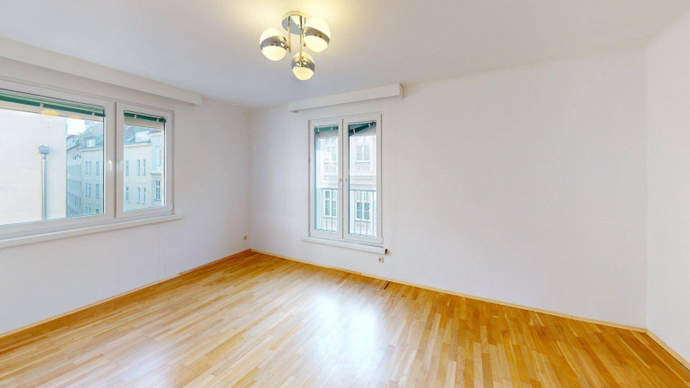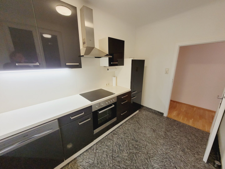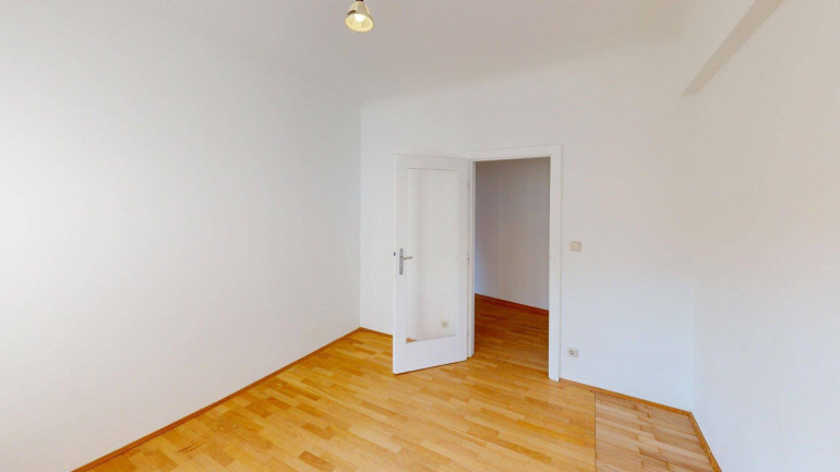 Man betritt die Wohnung über den Vorraum/Flur. Rechterhand befindet sich zuerst das Badezimmer, eingerichtet mit einer Dusche. Daneben liegt das separate WC. Im Flur weiter gelangt man in die Küche, eingerichtet mit einer kompletten Einbauküche. Danach kommen das erste Schlafzimmer, das Wohnzimmer und das zweite Schlafzimmer. Das erste Schlafzimmer ist vom Flur aus zu betreten. Das Wohnzimmer ist ein Durchgangszimmer. Das zweite Schlafzimmer erreicht man vom Wohnzimmer aus. Die Wohnung hat die Fenster in drei verschiedene Himmelsrichtungen, dadurch ist sie sehr hell und freundlich. Die Wohnung wurde vor einiger Zeit saniert und befindet sich in sehr gutem Zustand.