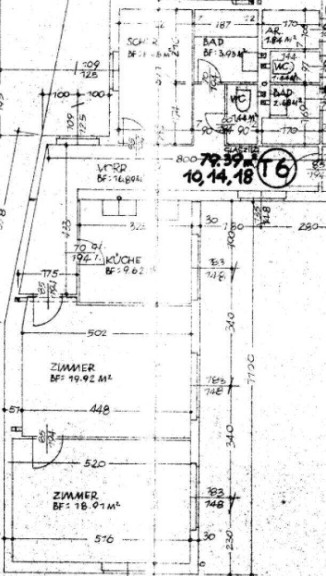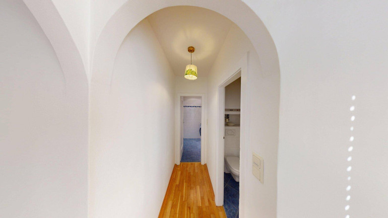 Achtung: der Plan entspricht nicht vollständig der Realität. An Stelle der Küche befindet sich das erste Schlafzimmer. Anstelle des Schrankraums befindet sich in natura die Küche.