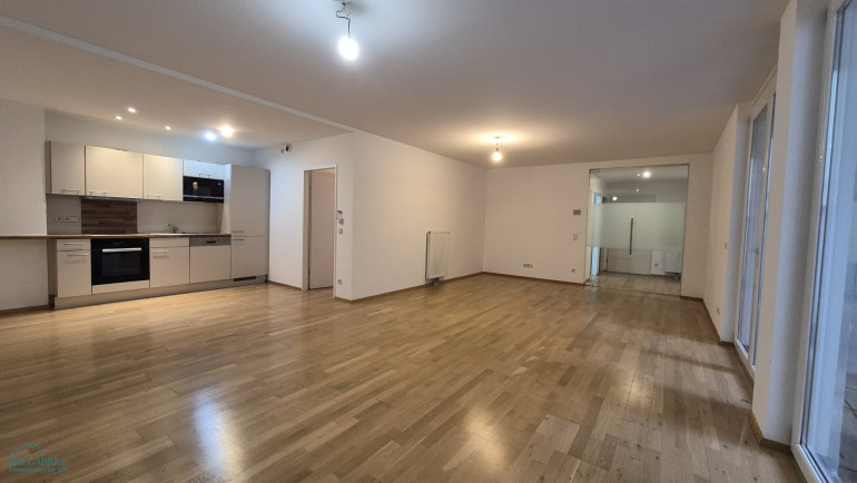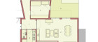 Vorzimmer, Wohn-Esszimer mit offener Küche und Ausgang auf die Terrase, zwei Schlafzimmer, Schrankraum, Wannenbad, separates WC, Wirtschaftsraum