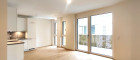 Durch die bodentiefen Fenster kommt nicht nur sehr viel Licht in das Apartment, sondern es streckt auch die Raumhöhe.