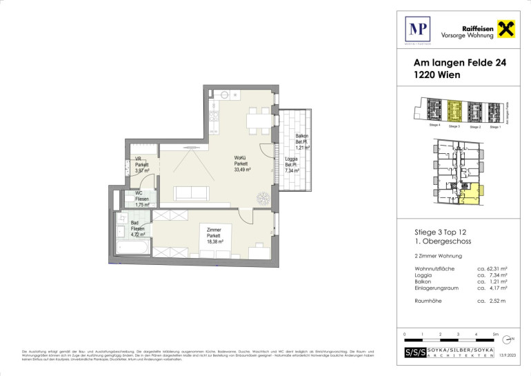 Die zu vermietende Wohnung befindet sich in der Stiege 3 im 1. Liftgeschoss und umfasst ca. 62 m².