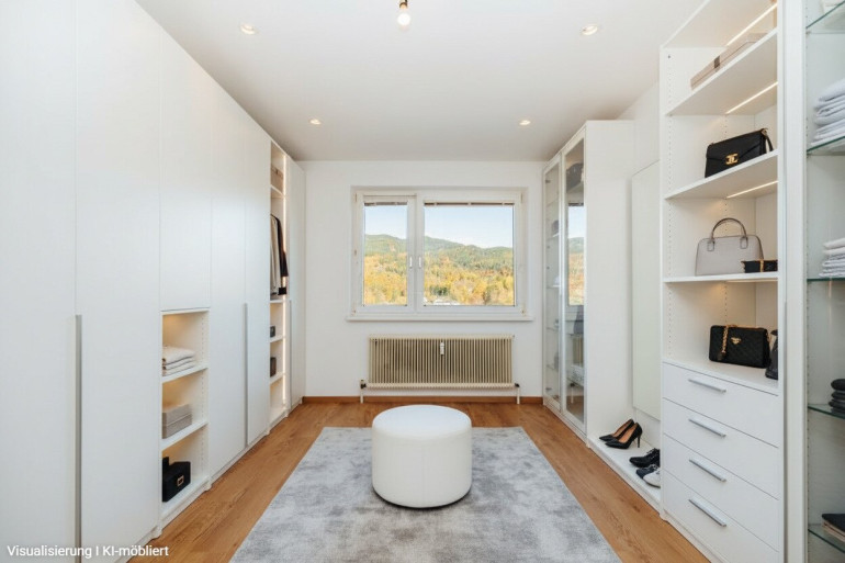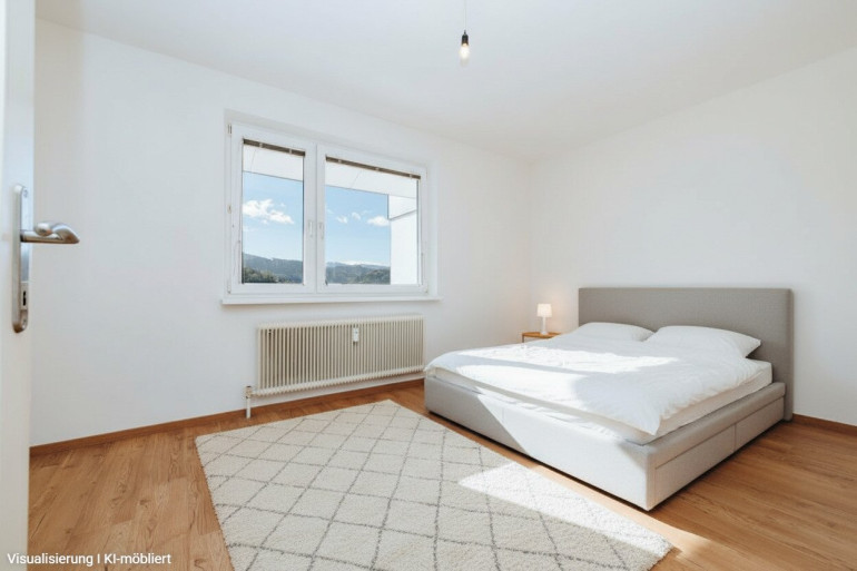 Die möblierten Bilder sind KI-Visualisierungen und sollen einen Eindruck vermitteln, wie die Wohnung eingerichtet wirken kann. Übergeben wird die Wohnung unmöbliert, mit vorhandener Küche und Badezimmer.