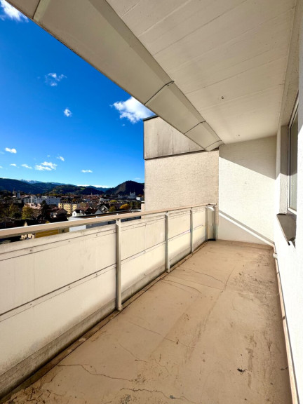 Die Wohnung überzeugt mit einem gut durchdachten Grundriss, drei separat begehbaren Zimmern und einem idealen Mix aus Funktionalität und Wohnkomfort. - Loggia mit Süd-Ausrichtung und Weitblick