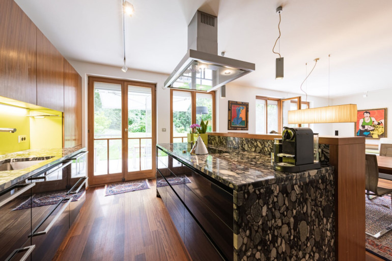 - großzügige Wohnküche mit vielen Terrassenausgängen, die für eine lichterfüllte Atmosphäre sorgen