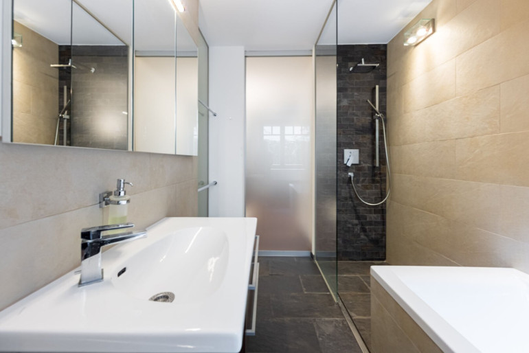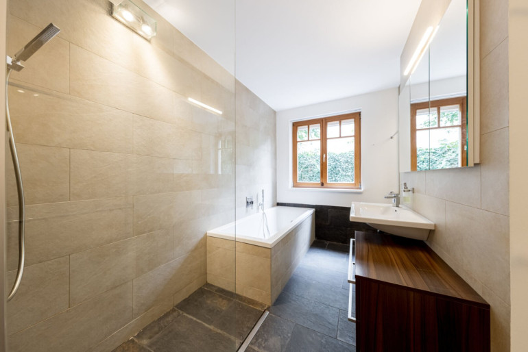- Tageslichtbad mit Badewanne und Walk-In-Dusche