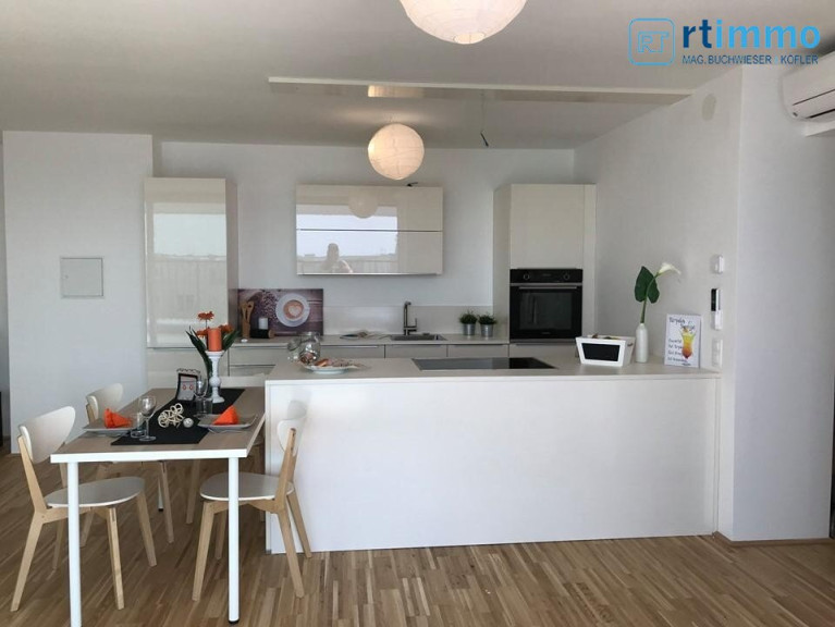 Diese neuwertige schöne Dachterrassenwohnung mit Fernblick besticht durch die große Terrasse, die von allen Zimmer begehbar ist und Sie die Abendsonne genießen lässt. Die Helligkeit der großen Terrassentüren macht diese Wohnung besonders lebenswert, zusätzlich zu der Aircondition, die einen kühlen Sommer garantiert. Von der Terrasse haben Sie einen tollen Blick bis zum Schneeberg und Rax sowie auf die Generali Arena, und natürlich im Norden der traumhafte Blick über Wien. Die Wohnung ist perfekt aufgeteilt und bietet zusätzlich zum großen Wohnesszimmer mit den 2 Schlafzimmer viel Platz. Das hochwertig ausgeführte Badezimmer und eine geschmackvolle Küche machen die Wohnung zum perfekten zu Hause.