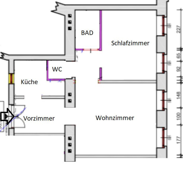 Die Wohnung wird, bis auf die Badezimmereinrichtung und die Küche, unmöbliert verkauft.