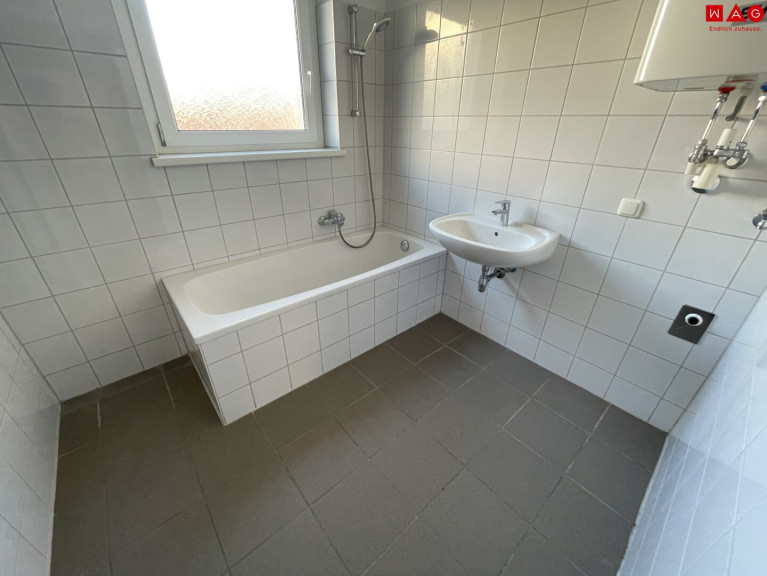 Ideale Single- oder Pärchen-Wohnung mit rund 59 m² Wohnfläche und ansprechendem Grundriss. Die Wohnung befindet sich im 1. Stock einer schönen, gepflegten Wohnanlage in einer sonnigen, ruhigen Siedlung. Aufgeteilt ist diese in eine gemütliche Küche, ein großes Wohnzimmer, ein ruhiges Schlafzimmer, ein neues Bad (mit heller Verfliesung, Badewanne, Waschmaschinenanschluss und einem großen Fenster) mit separatem WC.