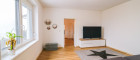 Das derzeitige Wohnzimmer grenzt direkt an das hochwertige Badezimmer mit Fenster, Badewanne und Dusche (Viterma) und kann bei Bedarf auch als großzügiger Schlafbereich genutzt werden. Die Raumaufteilung ist flexibel und ideal für Paare, kleine Familien oder Homeoffice-Nutzer.