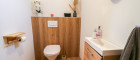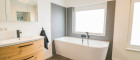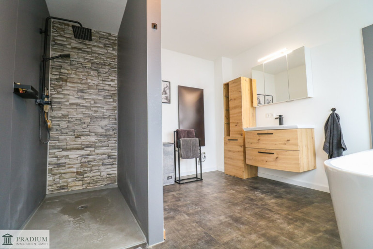 Besonders hervorzuheben ist das hochwertige Badezimmer der Firma Viterma: modern, zeitlos und funktional gestaltet, mit Fenster, komfortabler Dusche und stilvoller Badewanne. Qualität, Pflegeleichtigkeit und Langlebigkeit standen hier klar im Fokus.