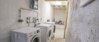 Im vorderen Bereich des Grundstücks befinden sich Garage und Stellplätze: eine Garage direkt am Haus sowie ein zusätzliches, gegenüberliegendes Teilgrundstück mit ca. 30 m² und Platz für zwei weitere Autos. Zwischen Garage und Wohnbereich liegen praktische Nebenräume mit Haustechnik und Waschraum.