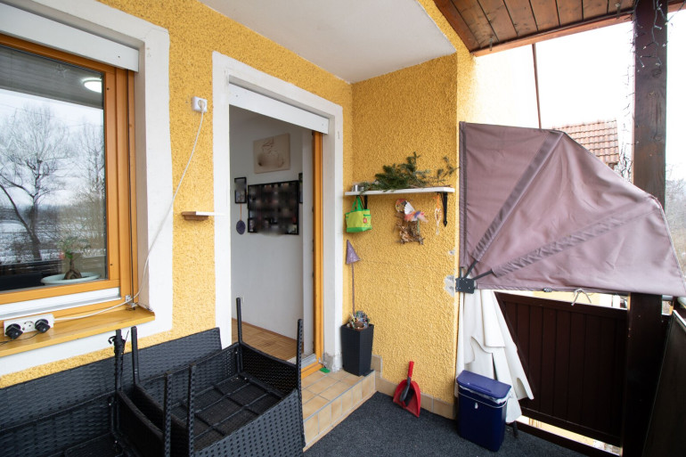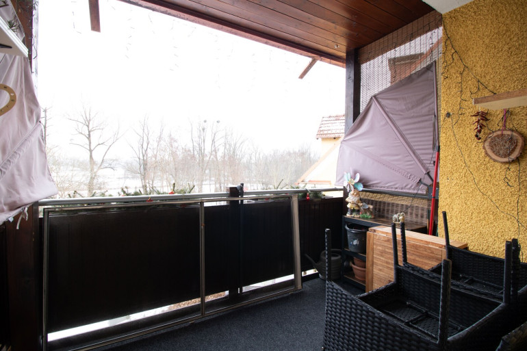 Ein besonderes Highlight ist der Südbalkon mit Ausblick auf einen Fluss, der sonnige Nachmittage und gemütliche Abendstunden im Freien ermöglicht.