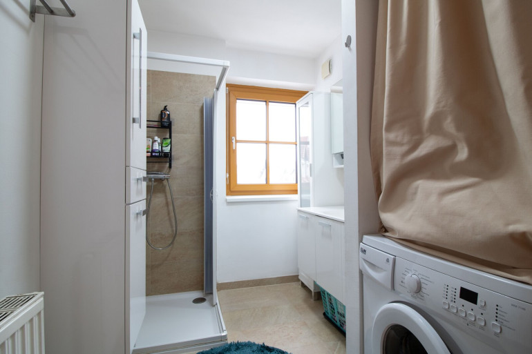 Das Badezimmer mit Fenster ist mit einer Dusche ausgestattet und sorgt für eine angenehme Wohlfühlatmosphäre. Ein Stellplatz ist ebenfalls vorhanden und bietet zusätzlichen Komfort.