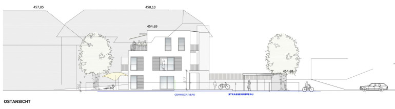 Errichtet werden 5 hochwertige Eigentumswohnungen, aufgeteilt auf drei Ebenen, mit Wohnflächen von rund 78 m2 bis 114 m2, wahlweise mit südwestlicher oder südöstlicher Ausrichtung.