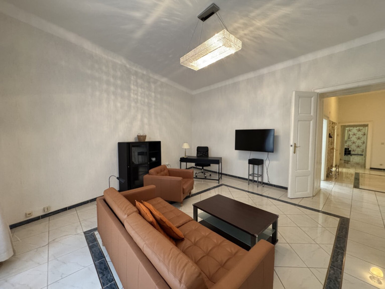 The two-bedroom apartment is located on the second floor (with elevator) of the building and offers a living area of approximately 130 square metres.